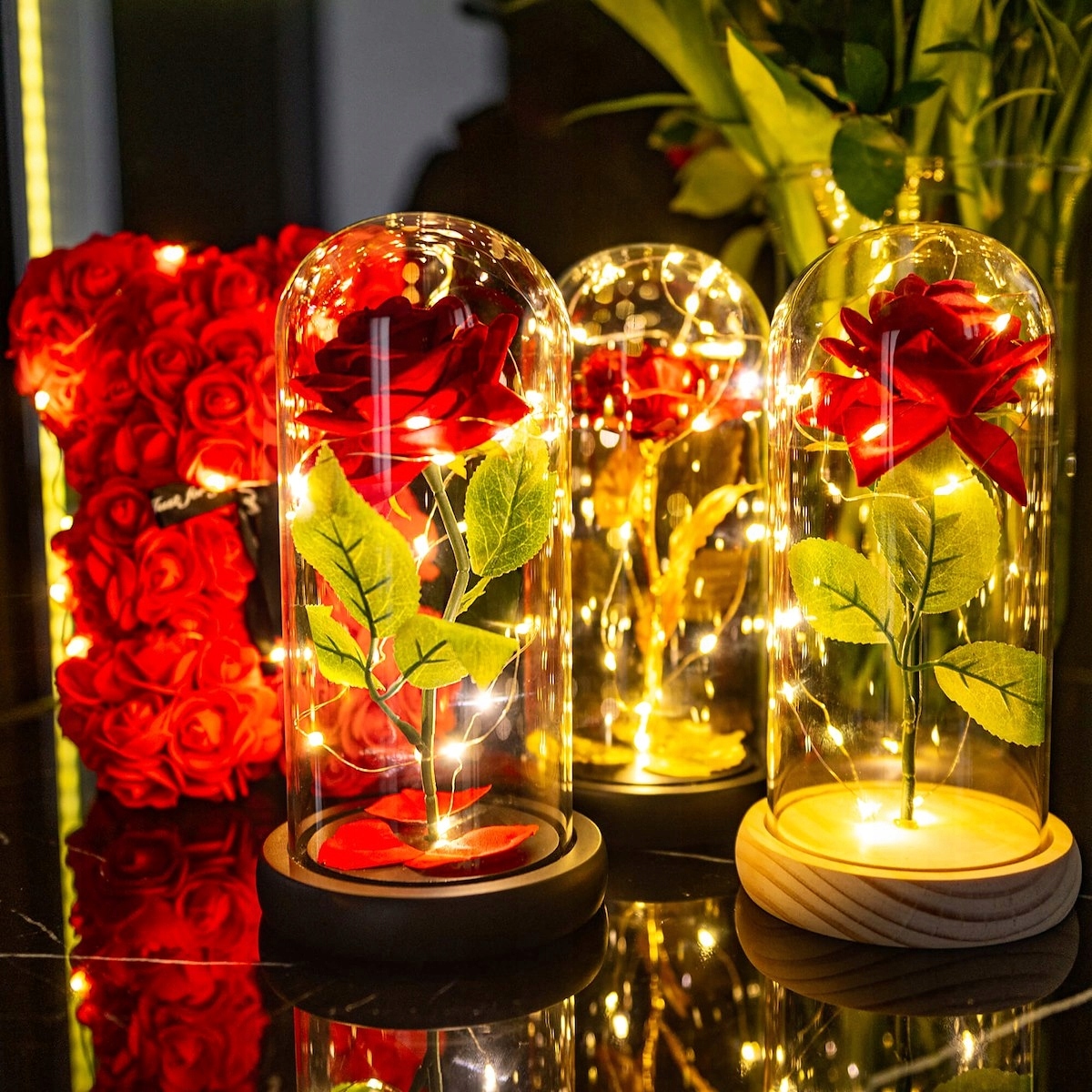Вечная роза в стекле, давая светящийся светодиод 22 см