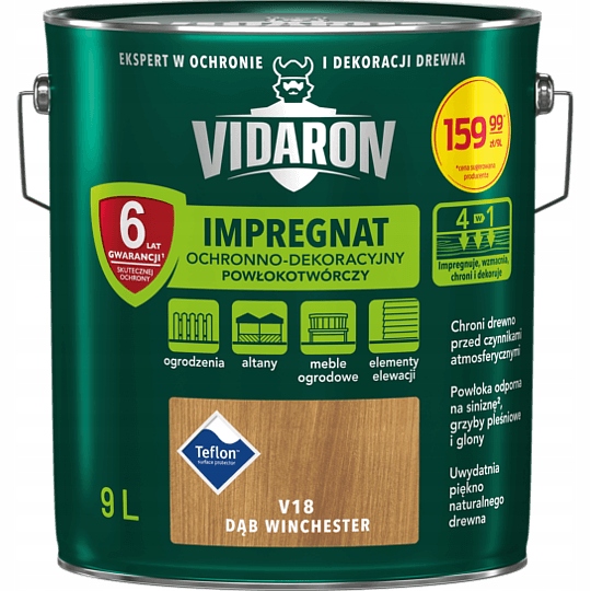 покрытие пропитки , предназначенное для защиты древесины и украшения, как снаружи, так и в помещении. Он эффективно подчеркивает естественную красоту окрашенного древесины, и в то же время пропитывает, а в его хорнии через неблагоприятные погодные условия. На поверхности древесины он создает специальное покрытие, которое защищает от его биокорозии - синяки, водорослей, грибков плесени, водорослей. В сочетании с бесцветной защитной пропитки Vidaron обеспечивает полную защиту от дерева.