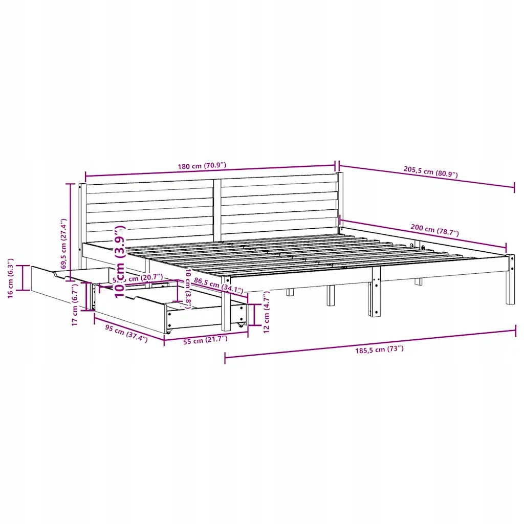 Хорошего сна вам поможет этот каркас кровати! Это приятное дополнение к любой спальне. Стабильный и прочный каркас: массив сосны известен своей прочностью и долговечностью. Простая текстура и характерные сучки добавляют деревенского шарма. Решетчатый каркас для оптимальной поддержки: Каркас кровати оснащен реечным основанием, обеспечивающим поддержку и хорошую вентиляцию матраса. Использование пространства: под каркасом кровати есть два ящика, в которых можно хранить такие предметы, как дополнительное постельное белье, сезонную одежду или игрушки. Легко маневрировать: ящик оснащен четырьмя колесами, что позволяет легко его вынимать и помещать под кровать. Полезно знать: матрас не входит в комплект этой кровати. Мы предлагаем широкий выбор матрасов – подходящий матрас вы можете найти в нашем магазине.