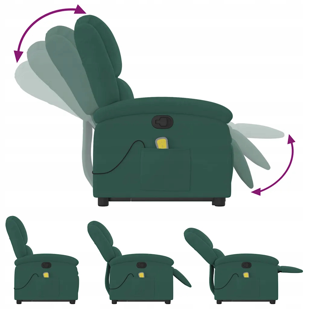 Массажное кресло vidaXL с откидной спинкой, подъемное, темно-зеленый, бархат