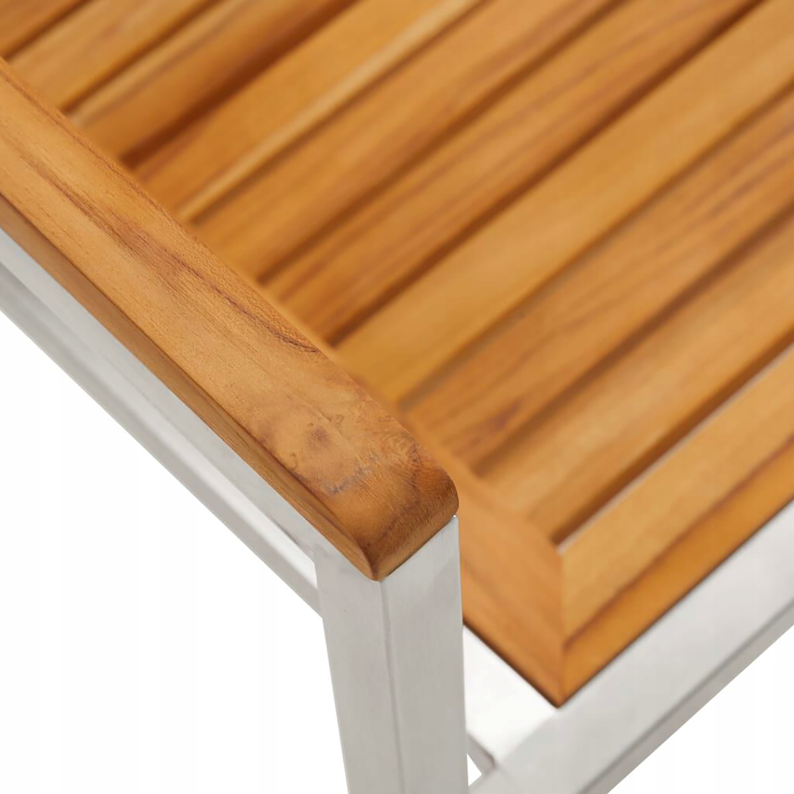 Этот большой садовый обеденный набор из 7 предметов — отличный выбор для любого открытого пространства, особенно для больших встреч с семьей и друзьями. Его современный стиль с отделкой из натурального дерева идеально вписывается в окружающую обстановку и обеспечивает достаточно места для приема пищи, что гарантирует фантастические впечатления. Прочные материалы: этот обеденный набор, изготовленный из массива акации и устойчивой к ржавчине стальной рамы, выдержит любую погоду, обеспечивая долгие годы комфорта и стиля. Стильный дизайн: сочетание стола с прорезями и элегантного металлического каркаса придает современный, но вневременной вид, улучшая атмосферу вашего патио или сада. Просторные размеры: прямоугольный стол размером 180 x 90 см идеально подходит для больших встреч на открытом воздухе и легко вмещает шесть человек. Продуманные особенности: стулья созданы для комфортного использования, имеют плоские подлокотники и гладкие поверхности, позволяющие гостям по-настоящему расслабиться за столом. Простота ухода: промасленная отделка защищает поверхности от влаги, поэтому их легко чистить, и они будут сохранять элегантный внешний вид в течение многих лет.