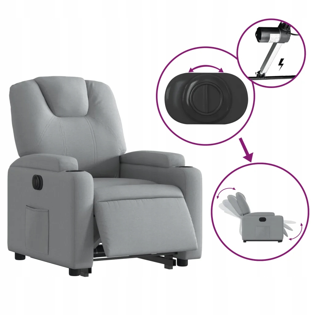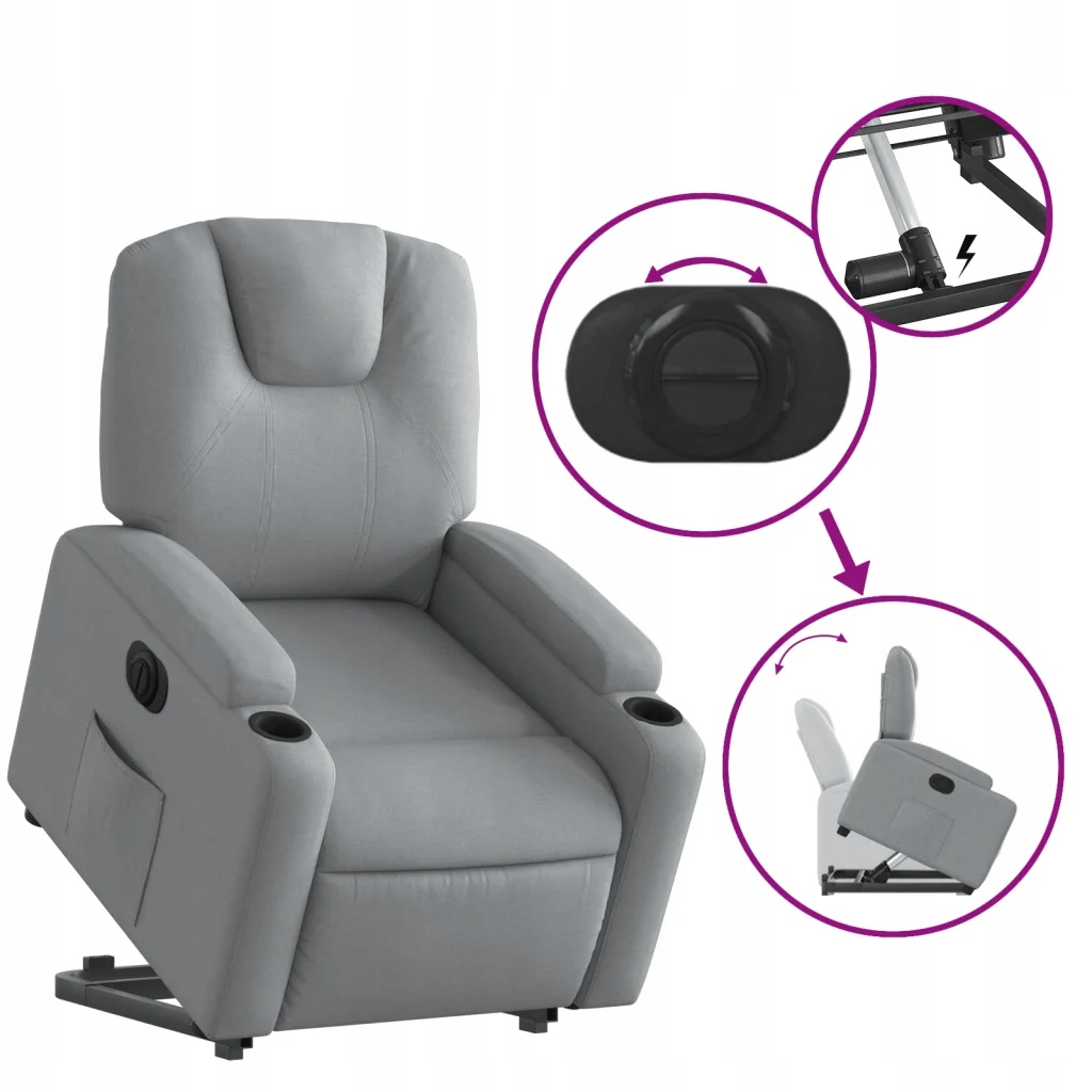 Подъемное массажное кресло vidaXL, электрическое, наклонное, светло-серое