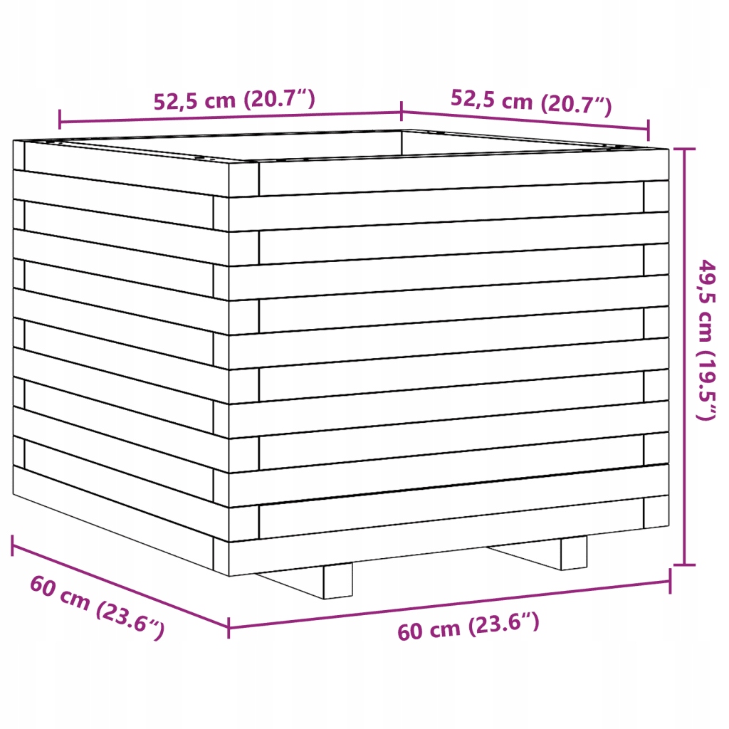 Садовое кашпо vidaXL 60x60x49,5 см из массива сосны