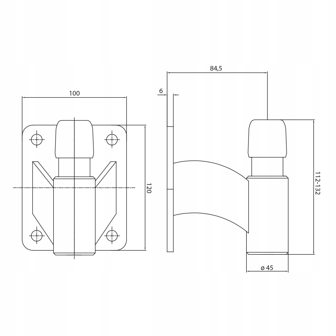 - Габариты: длина основания 120 мм, ширина 100 мм, высота ограничителя 84,5 мм, что обеспечивает стабильную и эффективную работу,