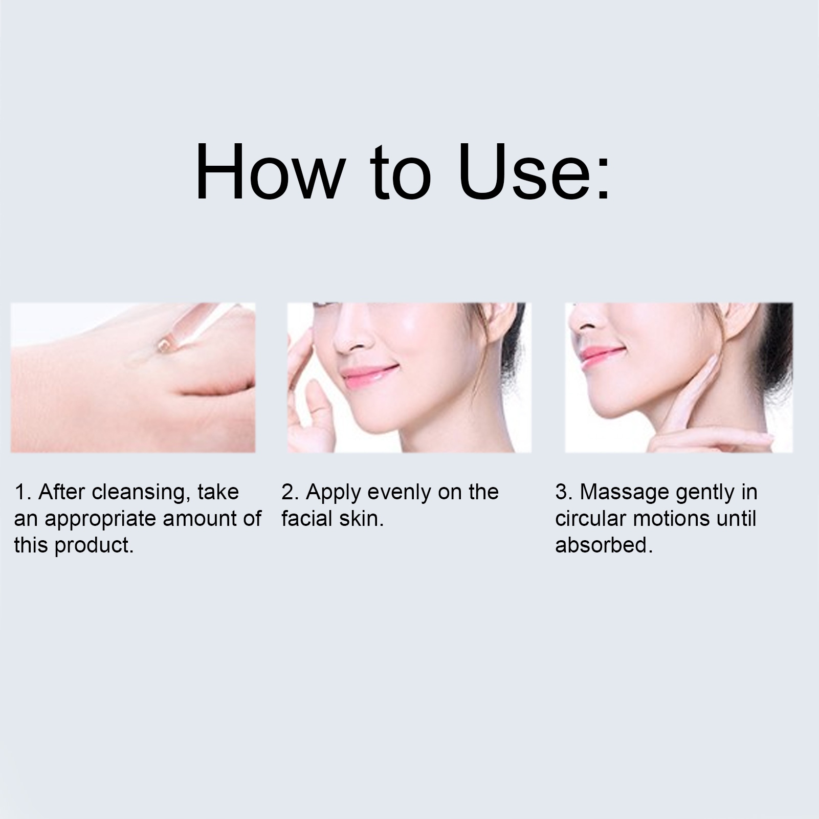5, простой в использовании, после очищения возьмите необходимое количество продукта и равномерно нанесите на кожу лица, аккуратно массируйте круговыми движениями до впитывания.