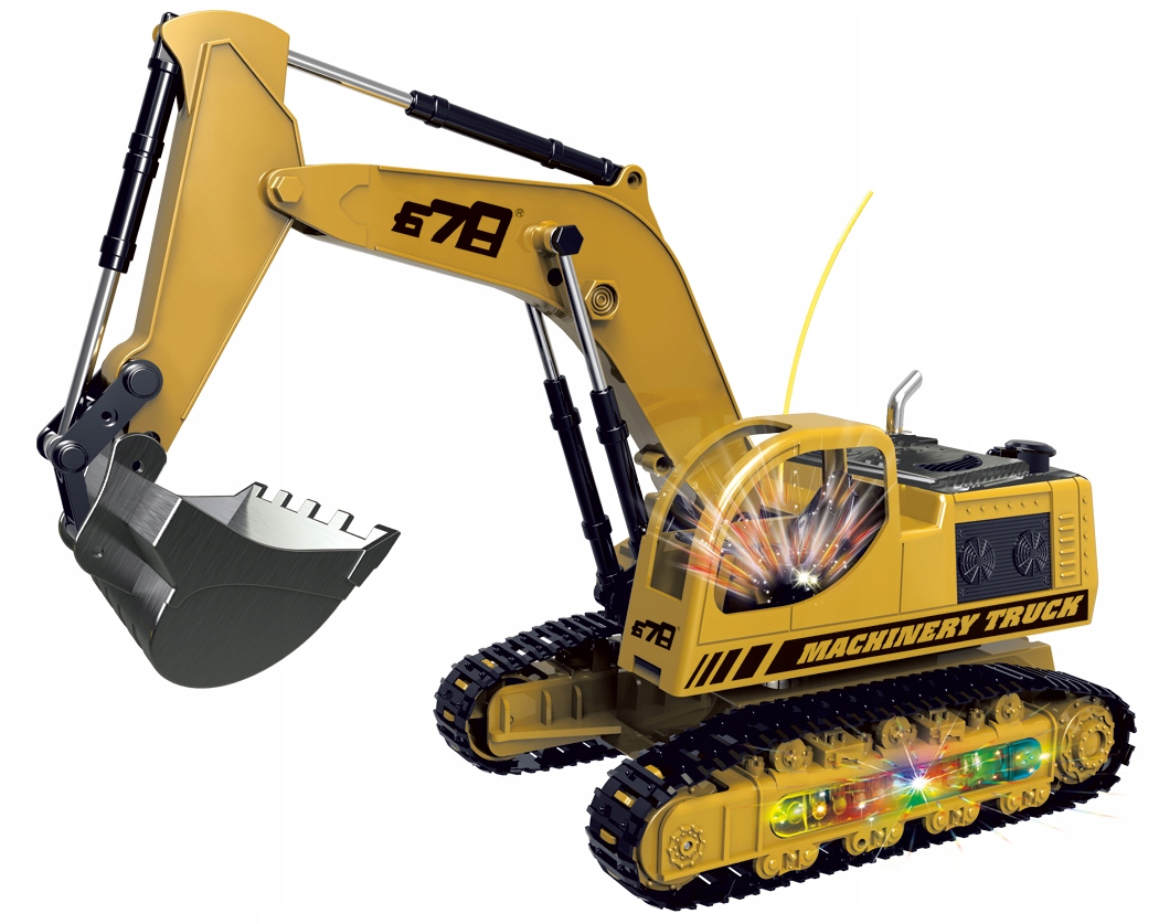 Ее металлическая и подвижная ложка могут двигаться, как в настоящем экскаваторе. Наша машина движется на гусенице вперед, назад и в сторону.