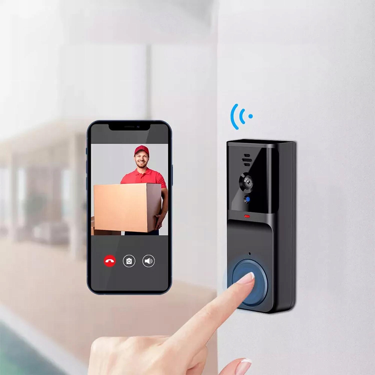 Звук и изображение беспроводного умного дверного звонка Wi-Fi могут быть идеально синхронизированы. Обеспечивает двусторонний разговор и видео в реальном времени с интеллектуальным шумоподавлением и адаптивной технологией.