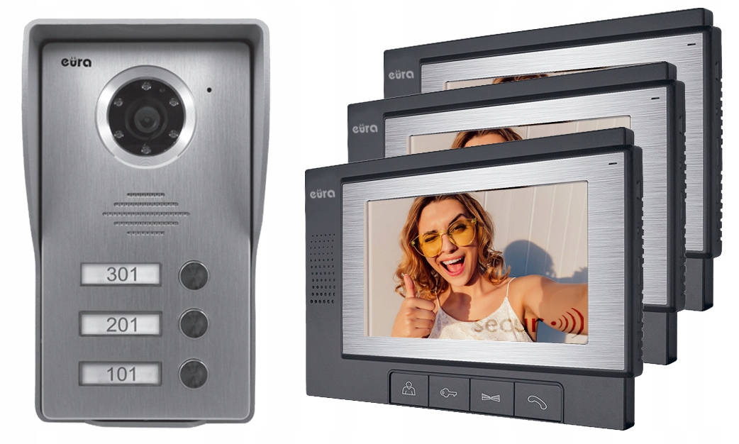 Видеодомофон Eura 3-семейный PLUTON