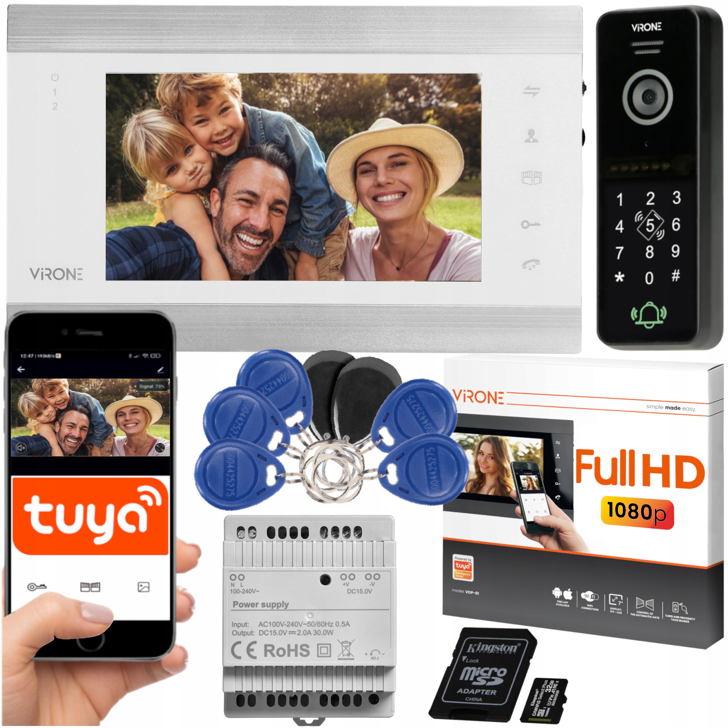ВИДЕОДОМОН WiFi FULL HD 7' ШИФРОВАТЕЛЬ + ПРИЛОЖЕНИЕ + БЛОК ПИТАНИЯ ДЛЯ DIN-РЕЙКИ