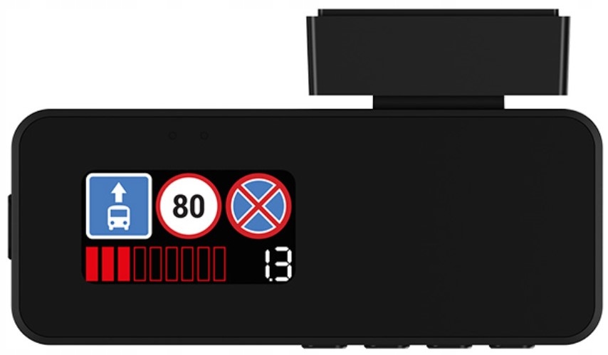 Экран с диагоналем 1,47 дюйма позволяет предварительно просмотреть текущую запись и регулировать угол видео -рекордера. Благодаря модулю GPS на экране также отображаются скорость автомобиля и информацию о камерах скорости и других событиях на дороге.