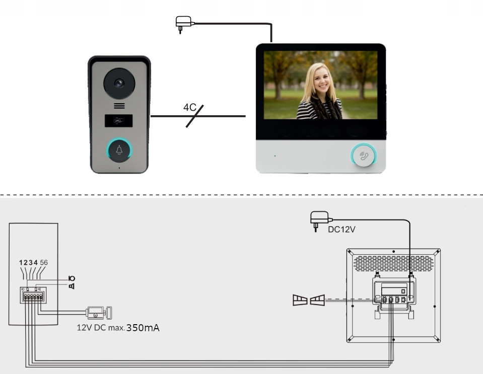 - Прямое управление электрическим водителем используется для открытия калитки/двери после вызова снаружи или после вызова функции предварительного просмотра на мониторе.