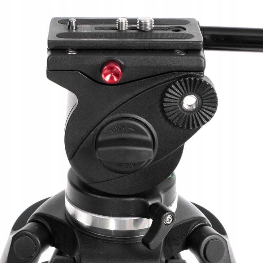 Хорошо изготовленная масляная головка, установленная на выравнивающей полусфере диаметром 65 мм. Два подшипника наклона, заключенные в герметичную встроенную кассету, обеспечивают наклон в диапазоне от -80° до +95°. Головка имеет функцию защиты от автоматического падения (так называемый автовозврат). Дополнительный подшипник панорамирования (вращения) обеспечивает плавное вращение во всем диапазоне 360°. Головка работает со средне-высоким приятным сопротивлением, благодаря чему мы не «ломаем» начало выстрела, а концовки получаются более плавными.