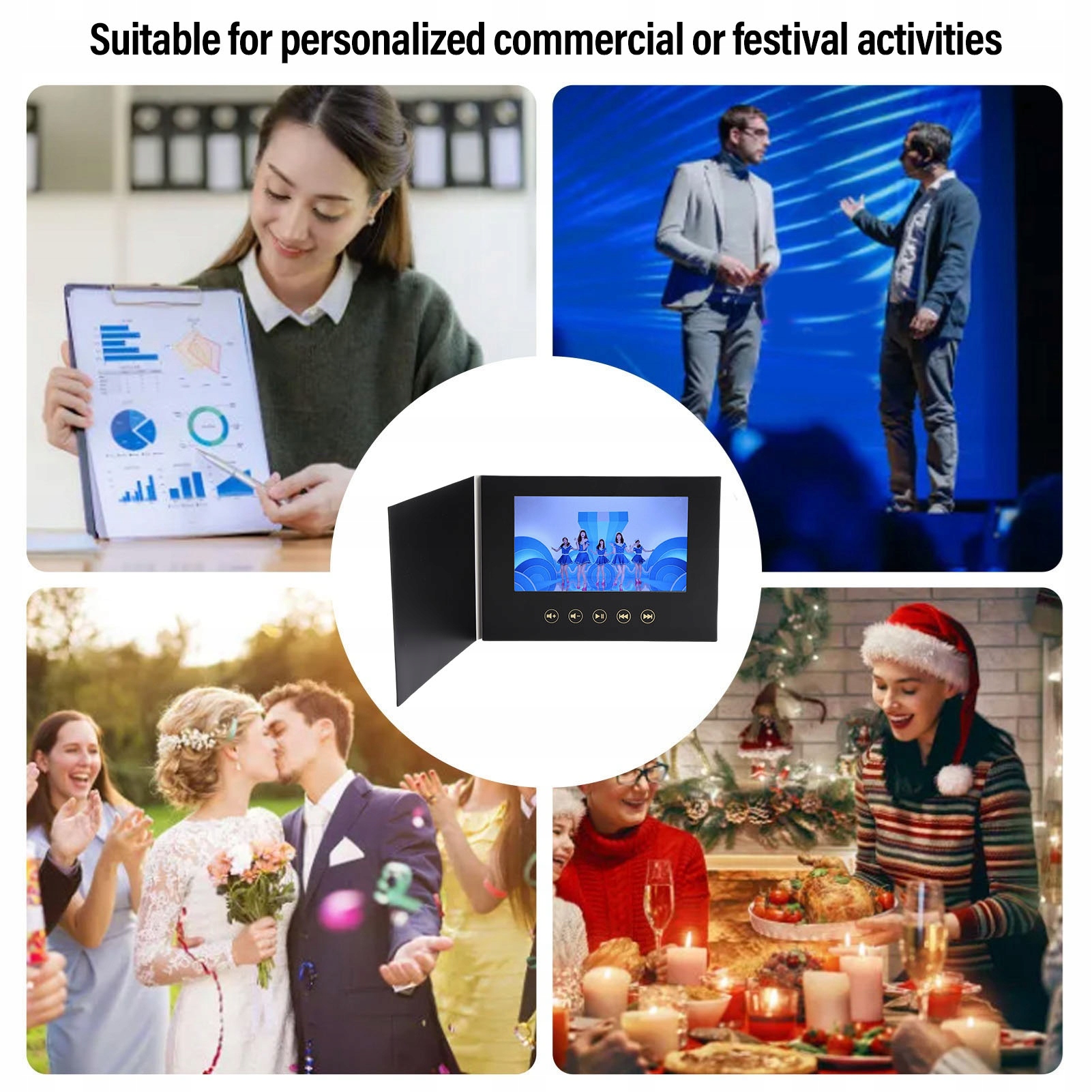 4. Портативная коммерческая реклама: цифровая видеоброшюра имеет изысканный и модный внешний вид и подходит для различных коммерческих мероприятий, таких как свадьбы, рестораны, автомагазины, магазины одежды и т. д. Это инновационный и портативный метод продвижения, демонстрирующий силу и креативность бренда.
