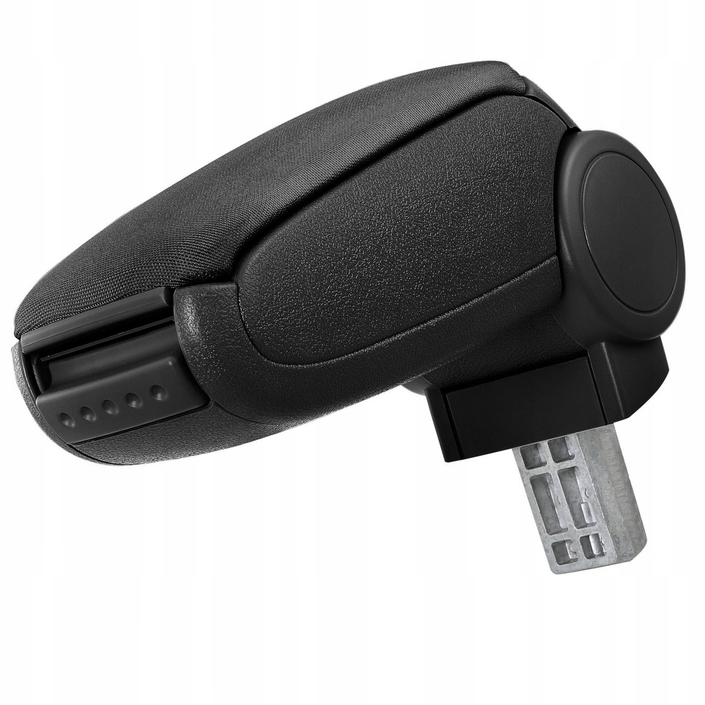 - Чтобы замедлить блокировку подлокотника, нажмите кнопку на передней части подлокотника чуть ниже кнопки открытия заслонка буфера. с черной замшей