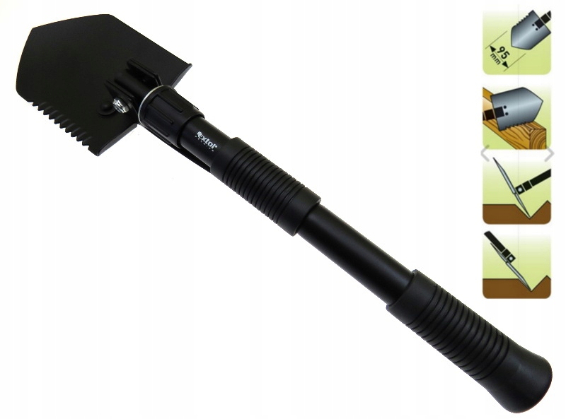 Складная лопата полностью металлическая с удобной ручкой, которая надежно лежит в руке. В воротнике имеется замок для большей устойчивости во время использования. Лопата поместится в любой рюкзак, сумку или машину. Он предназначен для копания, резки, создания щелей или открытия бутылок.