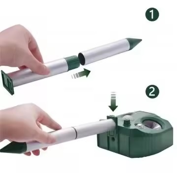 С с использованием шипа - благодаря шипу, входящему в комплект, отпугиватель можно разместить в удобном месте в саду.