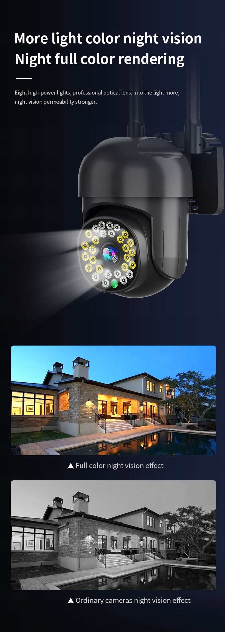 - Ночная видимость - 14 встроенных ИК-светодиодов обеспечивают видимость в ночное время.