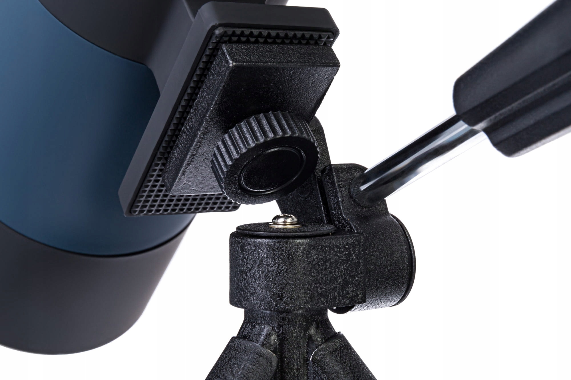 Большое расстояние выходного зрачка позволяет наблюдать в очках, что еще больше повышает удобство использования устройства. На окуляре имеется диоптрийная регулировка. Корпус телескопа изготовлен из пластика, штатив — из металла. Для установки устройства в нужном направлении на штативе используется удобная ручка регулировки.