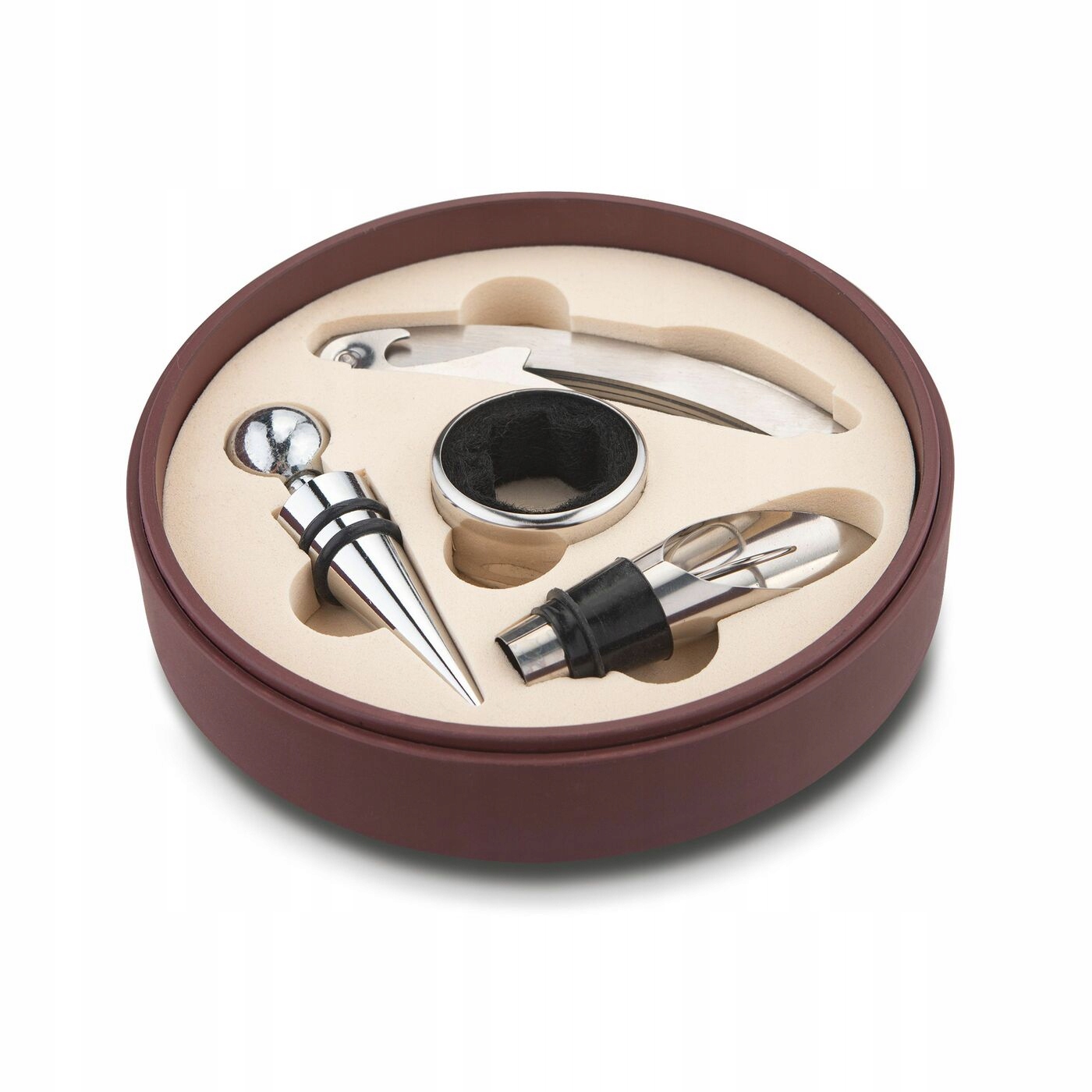 В набор для вина Konighoffer Moscato из 5 предметов входят аксессуары из нержавеющей стали. К ним относятся барменский штопор, наливная горловина, пробка для бутылки и кольцо для горлышка бутылки. Это сделает открытие бутылок вина более эффективным и простым. Вы также получите удобство наполнения стаканов. Более того, вы позаботитесь о том, чтобы ни одна капля напитка не пролилась на столешницу или скатерть. Вы также можете правильно закрыть открытую бутылку вина, например, во время романтического вечера. Более того, у вас появится хороший подарок на любой случай. Все это было закрыто в декоративную коробку из МДФ (круглую) с практичным молдингом. Таким образом, вы можете хранить набор гигиенично и удобно.