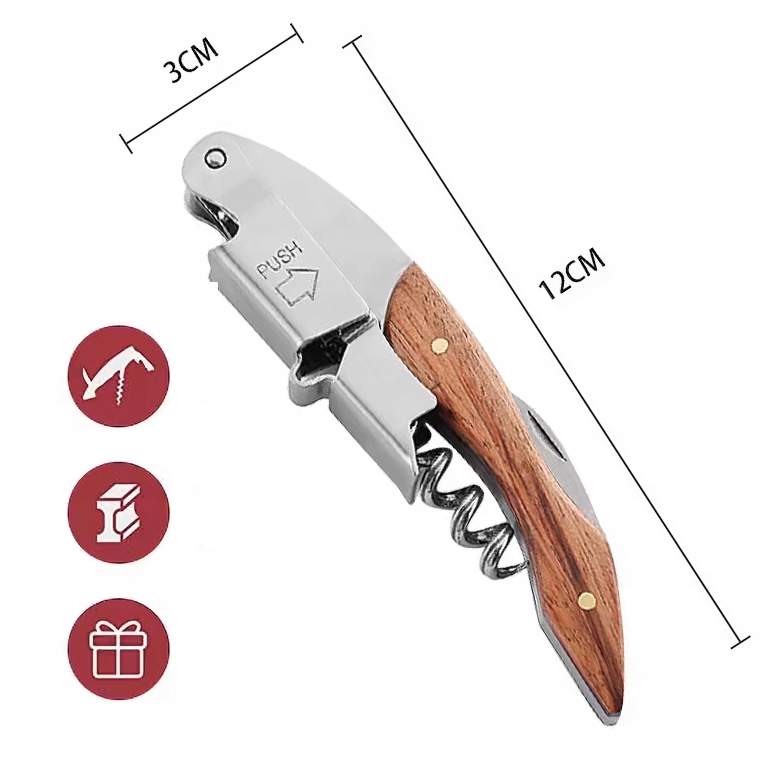 Элегантный дизайн: Накладки штопора изготовлены из экзотической древесины, что придает ему уникальный характер и элегантность.