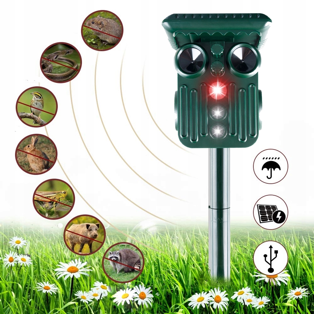Новейший отпугиватель животных использует принцип вибрации ультразвуковых волн с частотным диапазоном 13,5кГц - 28,5кГц. Ультразвуковые волны этого диапазона частот раздражают органы слуха и нервную систему животных. Когда отпугиватель обнаруживает животное с помощью инфракрасного света, он посылает отпугивающие ультразвуковые волны. Животные не могут привыкнуть к устройству. Звук раздается через определенные промежутки времени в зависимости от обнаруженного движения.