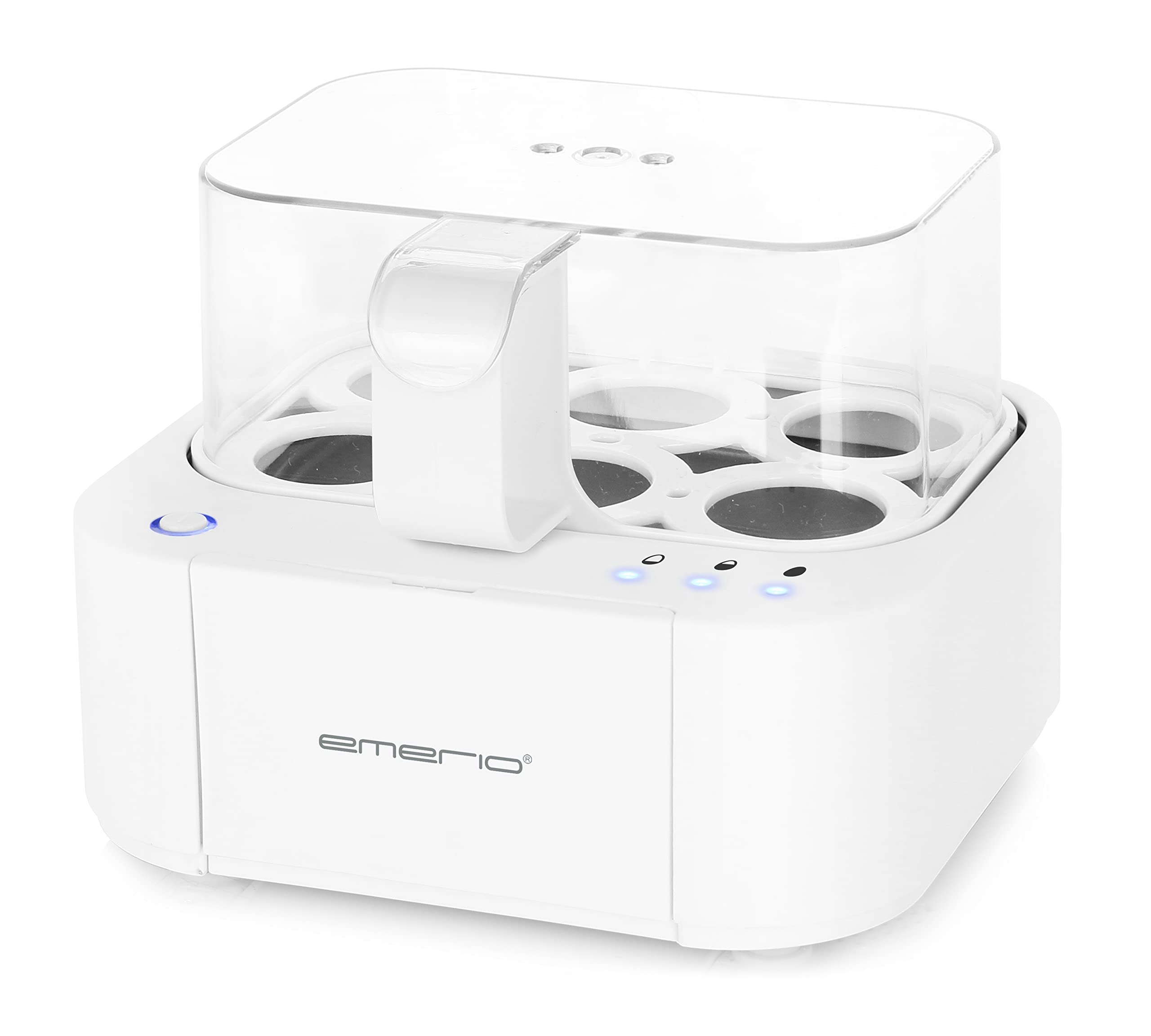 - Уникальный на рынке – доступен только на ЭМЕРИО | полностью автоматическая яйцеварка с индикатором точки приготовления в виде контрольных лампочек и одним голосовым выводом -> с этой моделью вы можете переключаться между немецким, английским, французским, испанским, итальянским или польским языками. Кнопка в нижней части устройства меняет язык.
