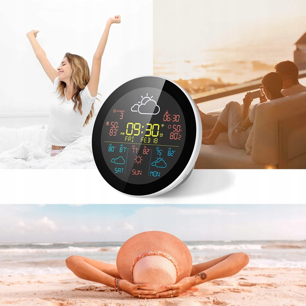 Эти погодные часы Tuya Wi -Fi с красочным ЖК -экраном требуют очень точных датчиков для более точного измерения температуры и влажности. Служба для отображения времени, дат, погоды, температуры и влажности в комнате, температура и влажность в сети, прогнозы погоды в течение следующих 3 дней и т. Д. Автоматическое выветривание и синхронизация. Интеллектуальное управление приложением, напоминание о настройке функции тревоги давления воздуха/ультрафиолетовая/скорость ветра/температура и влажность, а также вы также можете просмотреть запись исторических тенденций температуры и влажности. Может поддерживать 3 подчиненных машин и в то же время измерить температуру и влажность в разных положениях