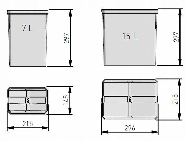 - оснащена двумя контейнерами: 2x по 15 л
