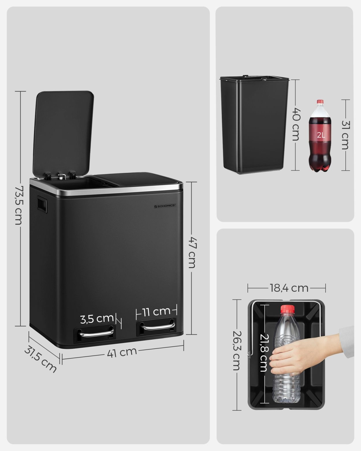 Відро для сміття Songmics з 2 відділеннями