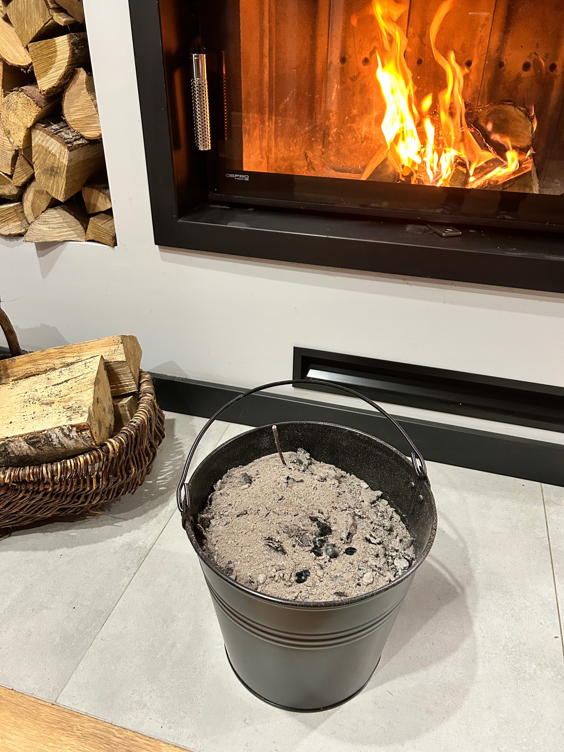 Высококачественное стальное ведро с ручкой, с порошковым покрытием черного, идеально подходит в качестве контейнера для золы из камина, как а также мусорное ведро для других отходов. Ведро оцинкованное, из толстой стали, с декоративным тиснением посередине.