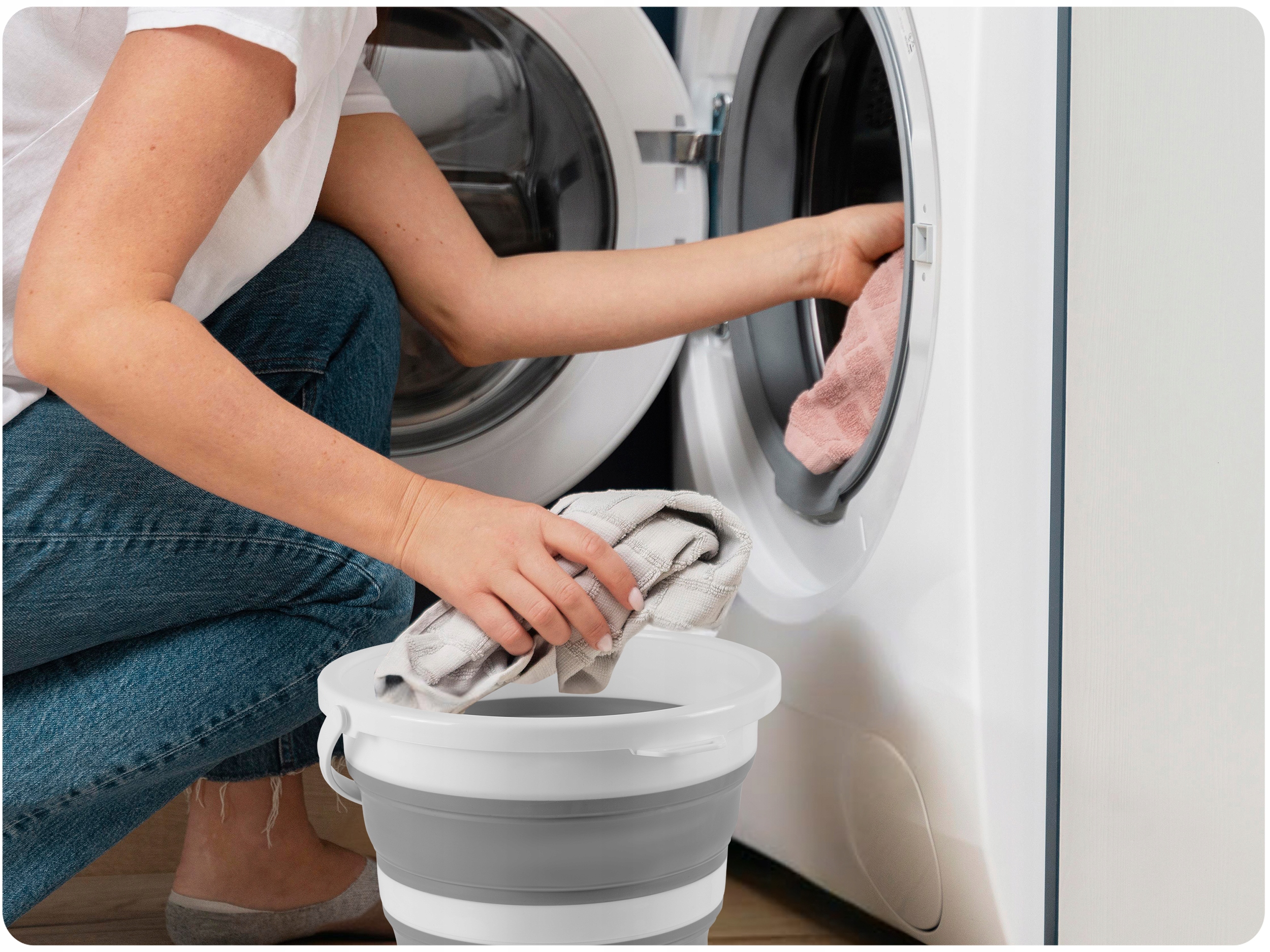 Складное ведро можно быстро разложить и наполнить его водой и моющим средством. Большая емкость идеальна для ручной стирки одежды и деликатного нижнего белья.
