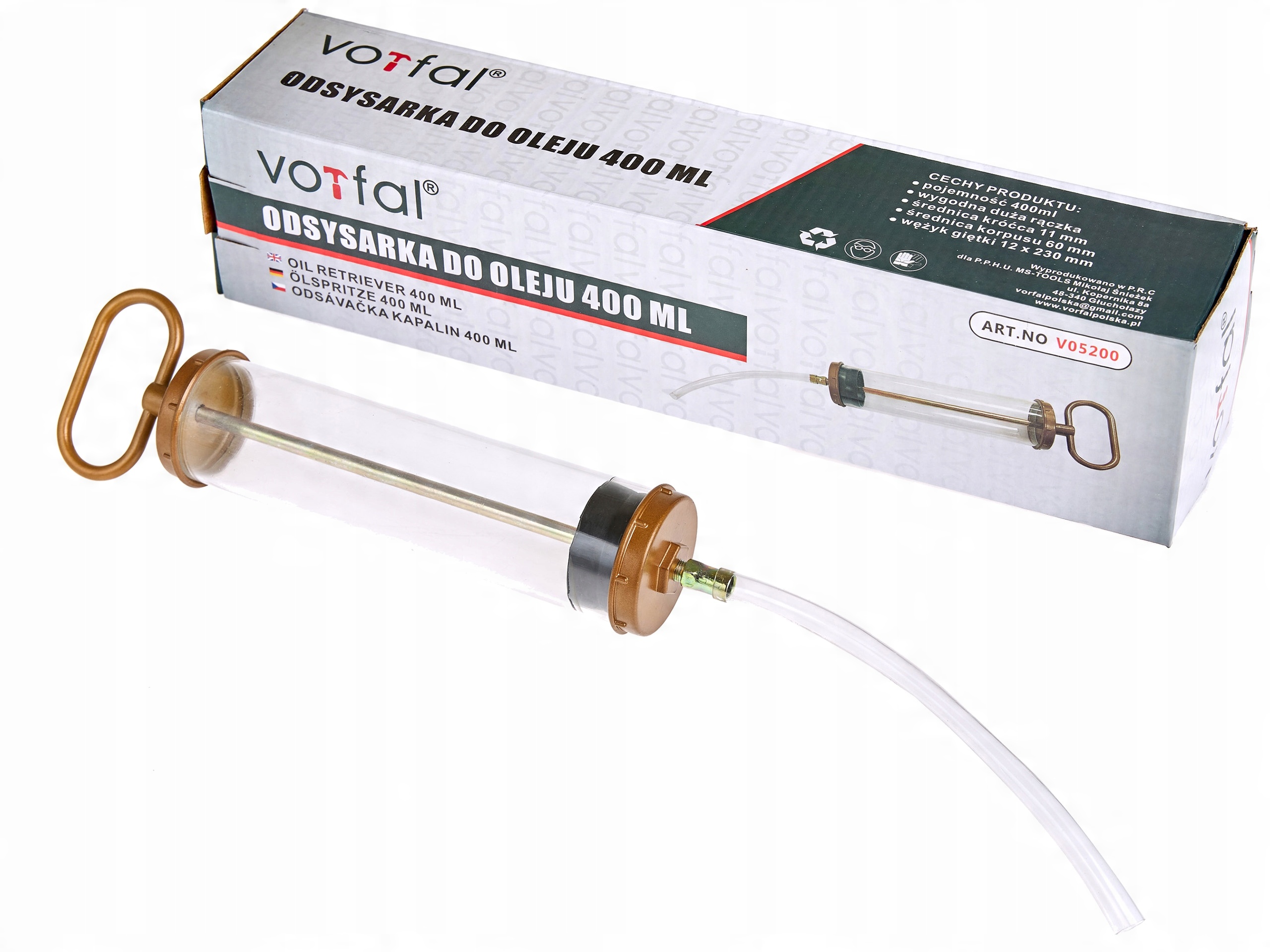 Шприц для масла ручной емкостью 400 мл. Используется для впрыска или всасывания масла из труднодоступных мест, например, коробки передач, ведущих мостов и т. д.