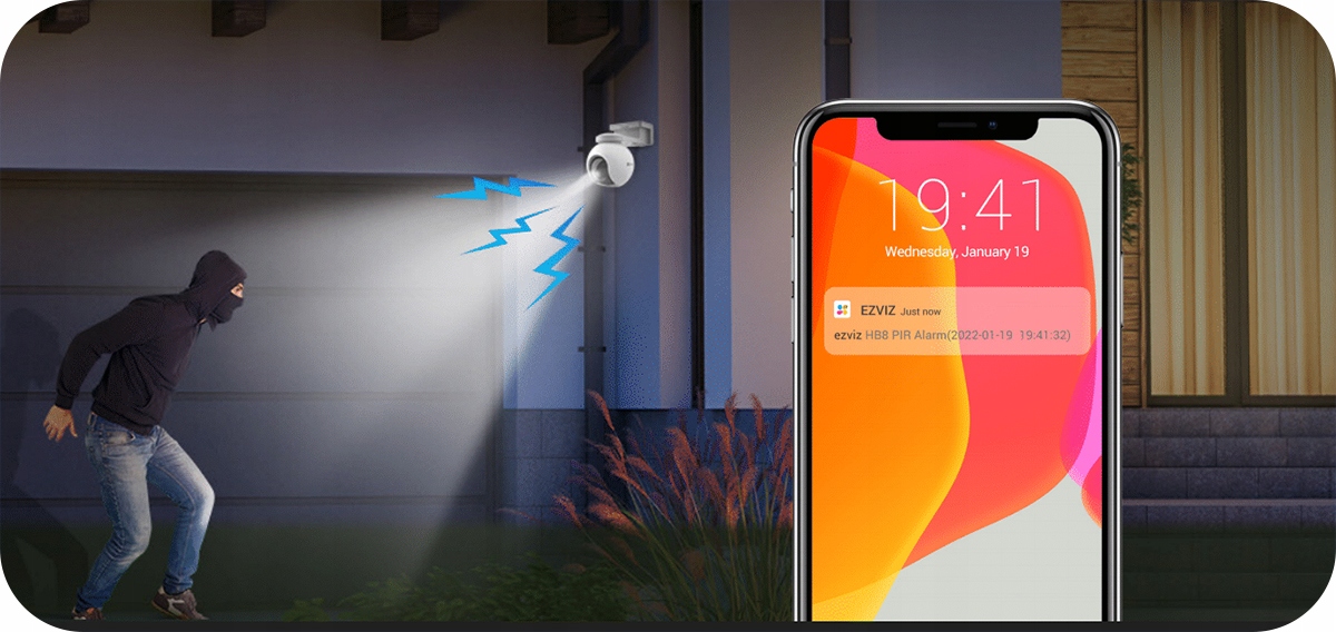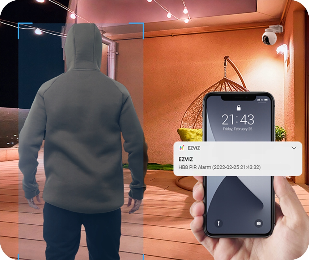 Испытайте новый стандарт в системах безопасности: камера имеет функцию автоматического отслеживания обнаруженного движения, в то время как по сравнению с камерами с обычным обнаружением движения на основе изменений изображения , HB8 оснащен PIR-датчиком реального события, а усовершенствованный алгоритм искусственного интеллекта интерпретирует движение и распознает, является ли это человеком или другим менее интересным объектом.