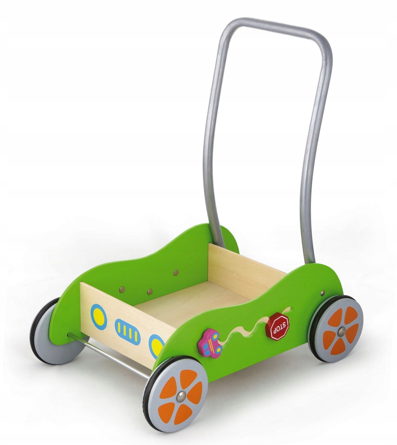 Деревянная коляска-пакера поддерживает ребенка в первых шагах. Коляска также можно использовать для хранения и транспортировки любимых игрушек. Толкатель имеет металлическую ручку и резиновые полосы на колесах, которые обеспечивают лучшую адгезию на землю, а также предотвращают рисунок пола. На боковых панелях есть подвижные элементы: передачи и раздвижные элементы.