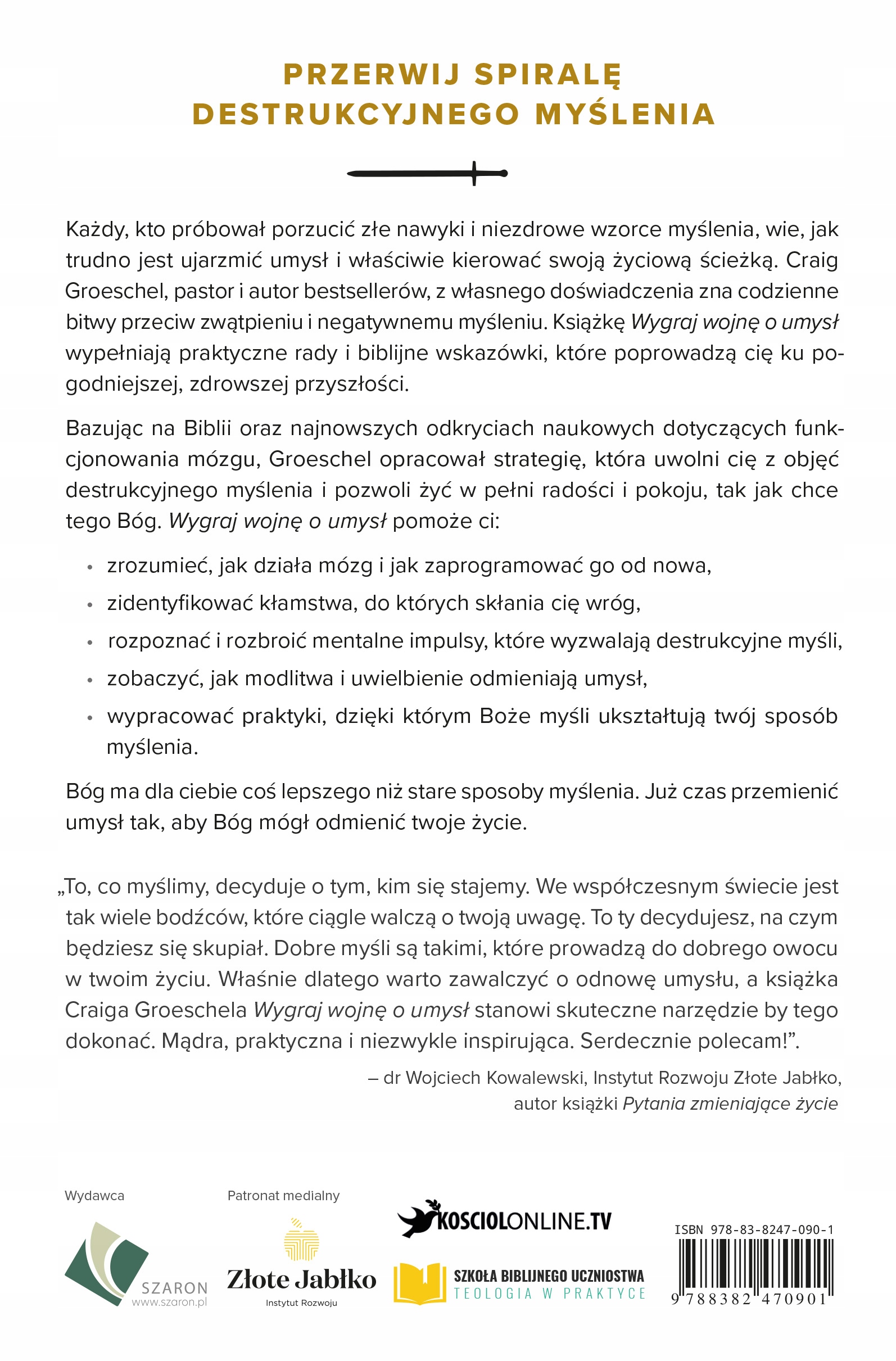 Любой, кто пытался избавиться от вредных привычек и нездорового образа мышления, знает, как это сделать. трудно укротить разум и правильно направить свой жизненный путь. Крейг Грошель, пастор и автор бестселлеров, знает повседневную жизнь на собственном опыте. борьба с неуверенностью в себе и негативным мышлением. Книга «Выиграй войну за разум» наполнен практическими советами и библейскими указаниями, которые приведут вас к более светлое и здоровое будущее.
