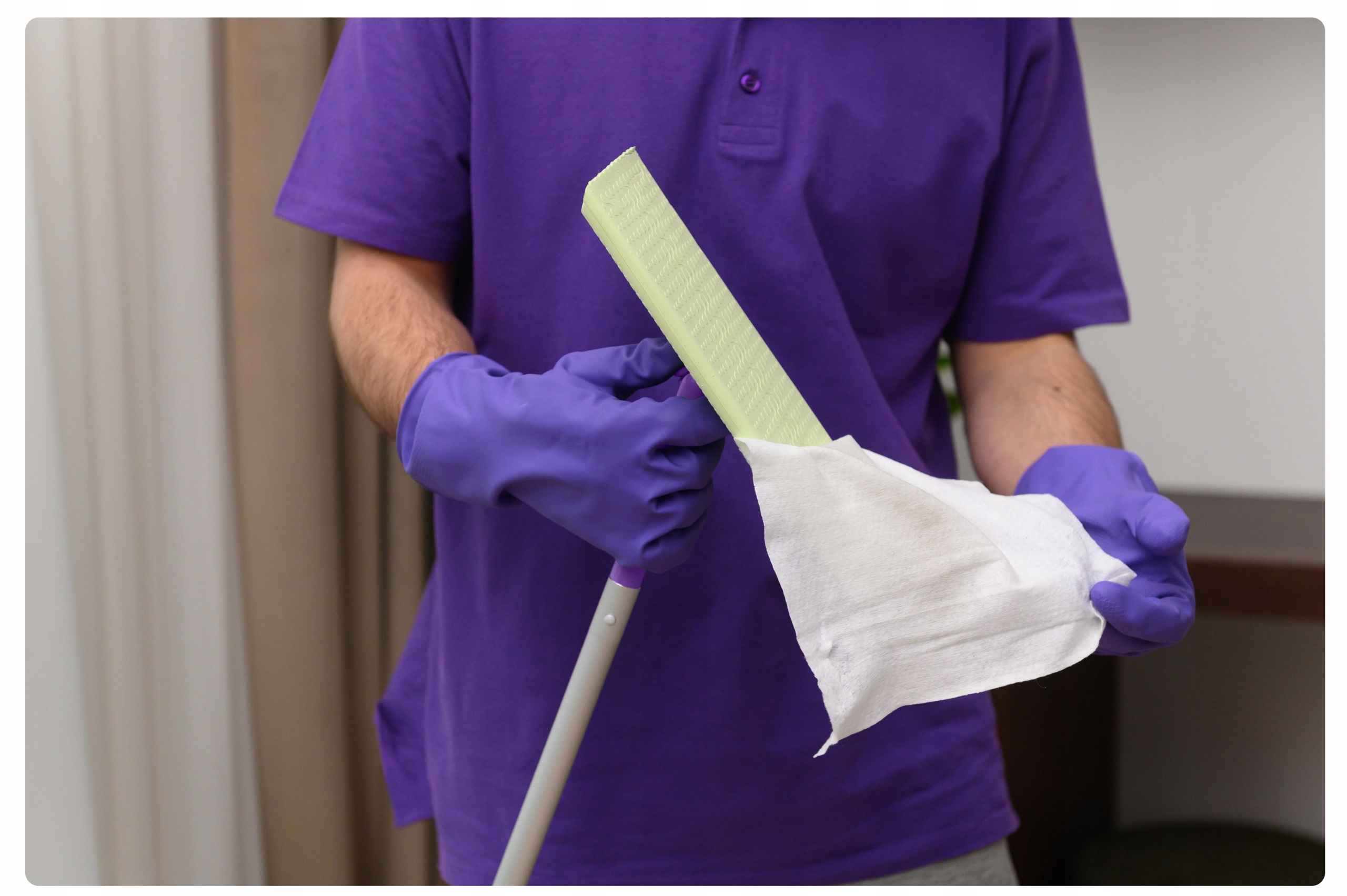 ✅ Снимите ткань из упаковки и протрите поверхность пола.