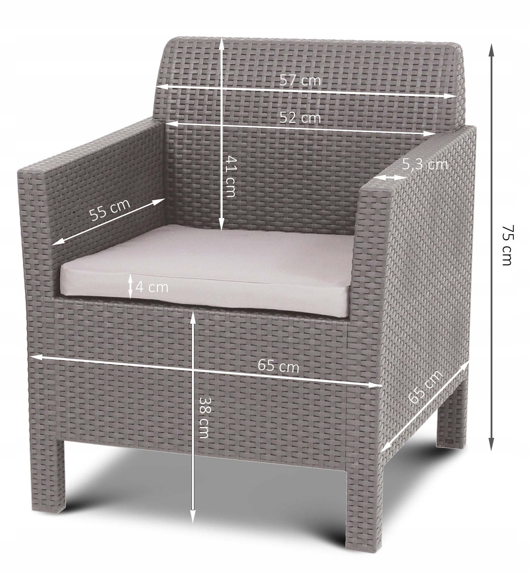 Классический комплект садовой мебели Orlando Weekend – идеальное предложение для тех, кто ищет стильные элементы оборудования балкона или террасы. Элегантные цвета, простая форма и интересная текстура поверхности, вдохновленная натуральным ротанговым переплетением, — основные эстетические ценности изделия. Компактные размеры и простота сборки – дополнительные преимущества набора. В комплект входят два кресла и журнальный столик со столешницей, имитирующей доску. Мебель из качественного пластика устойчива к внешним факторам и ультрафиолетовым лучам.