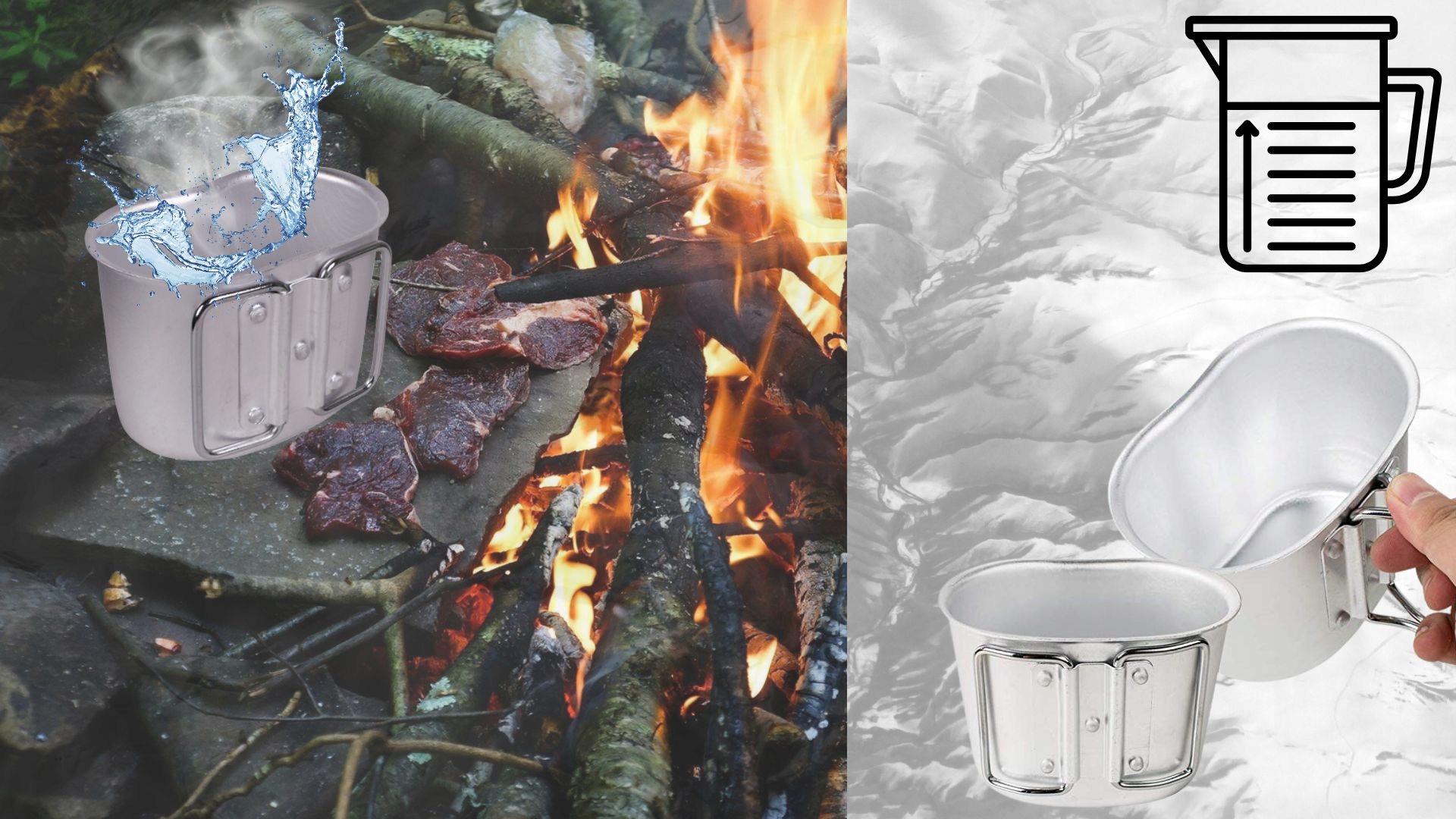 ✅Универсальная кружка емкостью 500 мл из алюминия. Из него можно пить или использовать для разогрева еды у костра. Складная ручка изготовлена из закаленной проволоки и не проводит тепло. Оснащен замком от автоматического складывания.