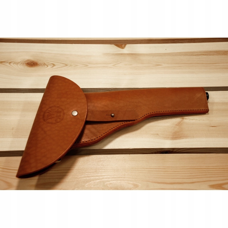 Кобура для револьвера с черным порохом изготовлена из коровьей кожи растительного дубления.