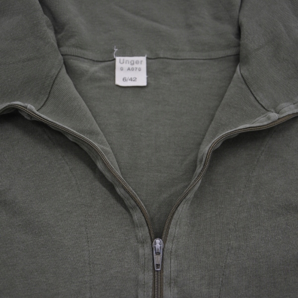 Оригинальная облегающая футболка Бундесвера с длинными рукавами. Выполнена в оливковом цвете (оттенок может отличаться от модели, представленной на фото). Имеет высокий воротник на молнии. Рукава заканчиваются манжетами.
