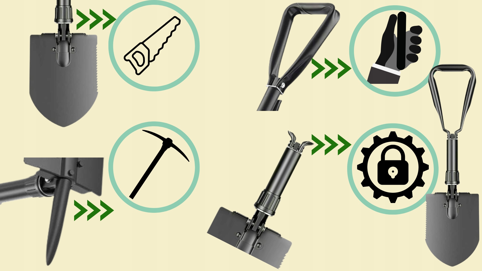 - ✅ В Ммногозадачном режиме — вы можете превратить лопату в мини-кирку и копать почву. Но это не все. Одна сторона лезвия зазубрена, поэтому лопату можно использовать и как пилу. Благодаря этому у вас не возникнет проблем с подготовкой лагеря. Также будет полезна для повседневной работы в саду.
