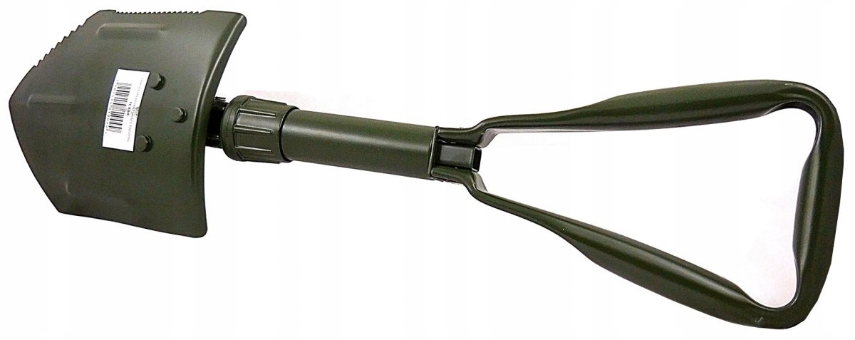 Надежная военная лопата, входящая в состав снаряжения, складная, полностью из стали. Лопата занимает очень мало места, что позволяет ее быстро и удобно переносить. Это универсальная модель, поскольку в разложенном наполовину состоянии она выполняет функции копателя, крюка или кирки (для копания земли, песка или мерзлого грунта).