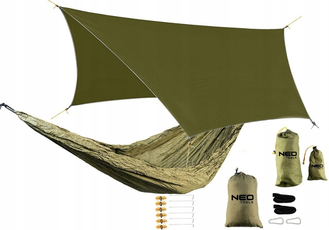 63-124 ГАМАК 330 X 140 СМ НАБОР ИНСТРУМЕНТОВ NEO + 63-130 Водонепроницаемый БРЕЗЕНТ 360 X 290 СМ 210T МАРКА: NEO Tools