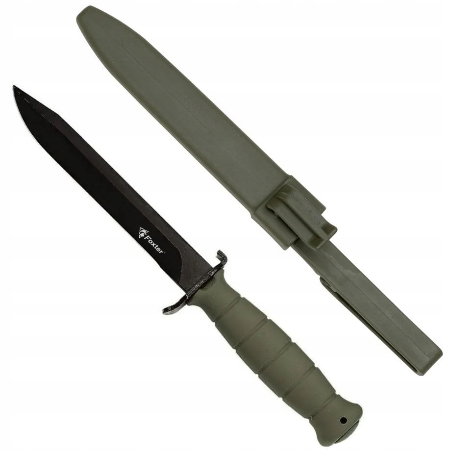 военный нож Foxter®. тяжелый нож с постоянным лезвием, предназначенным для наружных, бушкрафтеров и всех активных людей. гладкий лезвие изготовлен из высококачественной нержавеющей стали . Нож отличный в руке благодаря эргономической ручке. Metal Jelec защищает руку от неконтролируемого скольжения к лезвию, а также выступает в качестве открытия бутылок. Простое оболочка используется для переноса ножа, сделанного из того же полимера, что и ручка. Обложка имеет прочный клип , который не позволит ножу вытягивать. Доступные цвета: