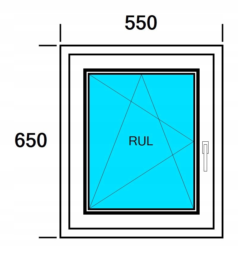 Размеры ОКНА ПВХ. 550 x 650 мм, Наклон и Наклон ВПРАВО