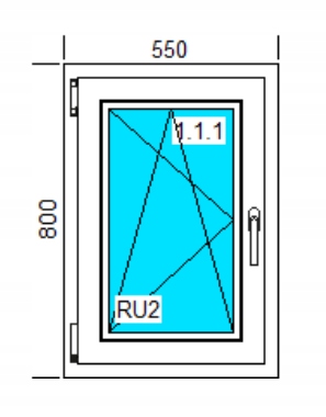 Размеры ОКНА ПВХ. 550 x 800 мм, Наклон и наклон