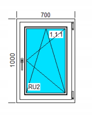 Размеры ОКНА ПВХ. 700 х 1000 мм, Наклон и наклон