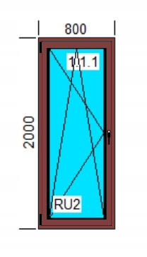 Размеры ОКНА ПВХ. 800 x 2000 мм, Наклон и наклон