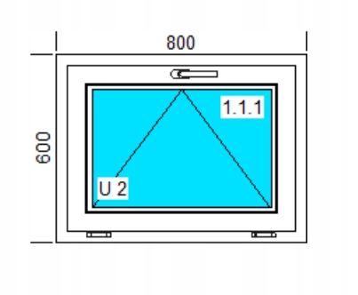 Размеры ОКНА ПВХ. 800 x 600 мм, наклонный
