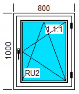 Размеры ОКНА ПВХ. 865 x 1135 мм, Наклон и наклон